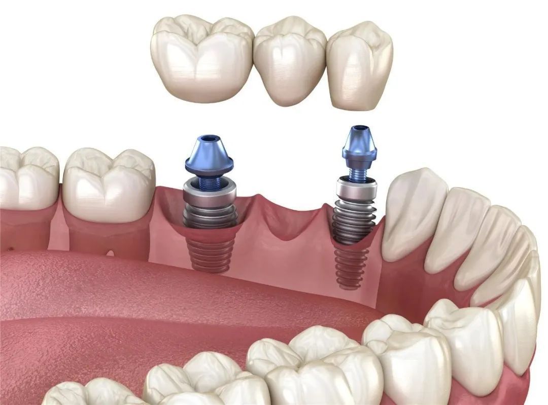 如果你在相邻位置连续缺了三颗以上的牙齿,别担心,不用非得种三颗牙才能修复。完全可以在骨量较好的位置植入两颗种植体,再搭上一个连冠,就可以完成对三颗缺失牙的修复。这种方式适用于多颗牙齿缺失的患者。如果你是半口、全口缺牙的朋友,建议可以采用All-on-6种植修复。